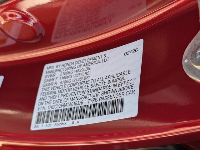 VIN: 1HGCY2F84TA016376 | Stock #: 016376 | Mileage: 10