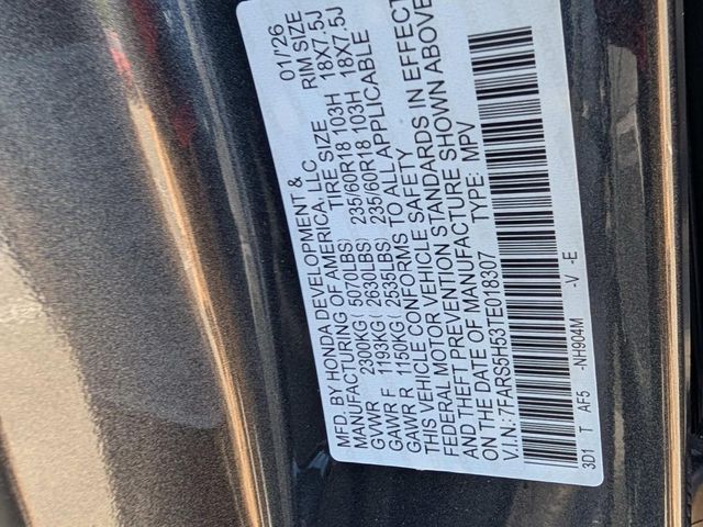 VIN: 7FARS5H53TE018307 | Stock #: 018307 | Mileage: 12